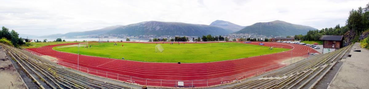 Valhall stadion med blant annet Tromsdalstinden i bakgrunnen.
